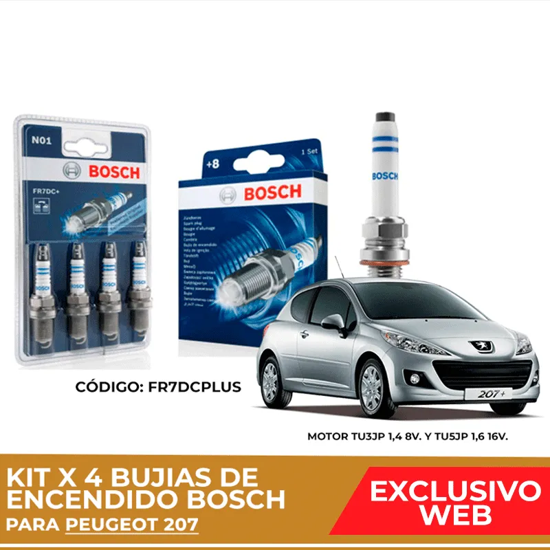 Kit 4 bujias de encendido bosch para Peugeot 207